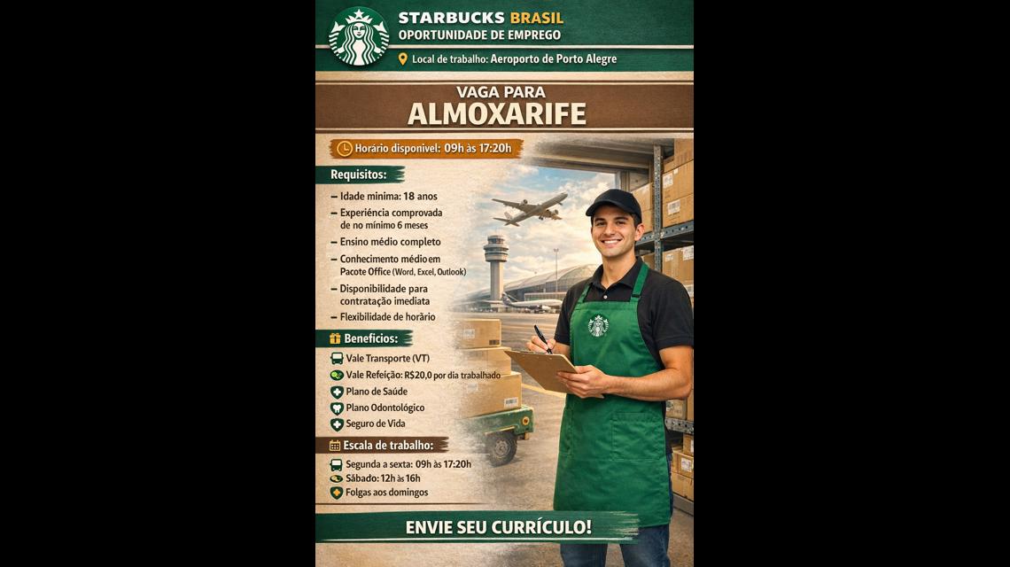Estamos em busca de um Almoxarife para se juntar à nossa equipe na Starbucks. Este é um papel fundamental para garantir que temos todos os ingredientes e suprimentos necessários para criar a experiência Starbucks que nossos clientes esperam. Como almoxarife, você será responsável por gerenciar o estoque, garantir a organização e manter a eficiência operacional do nosso almoxarifado.